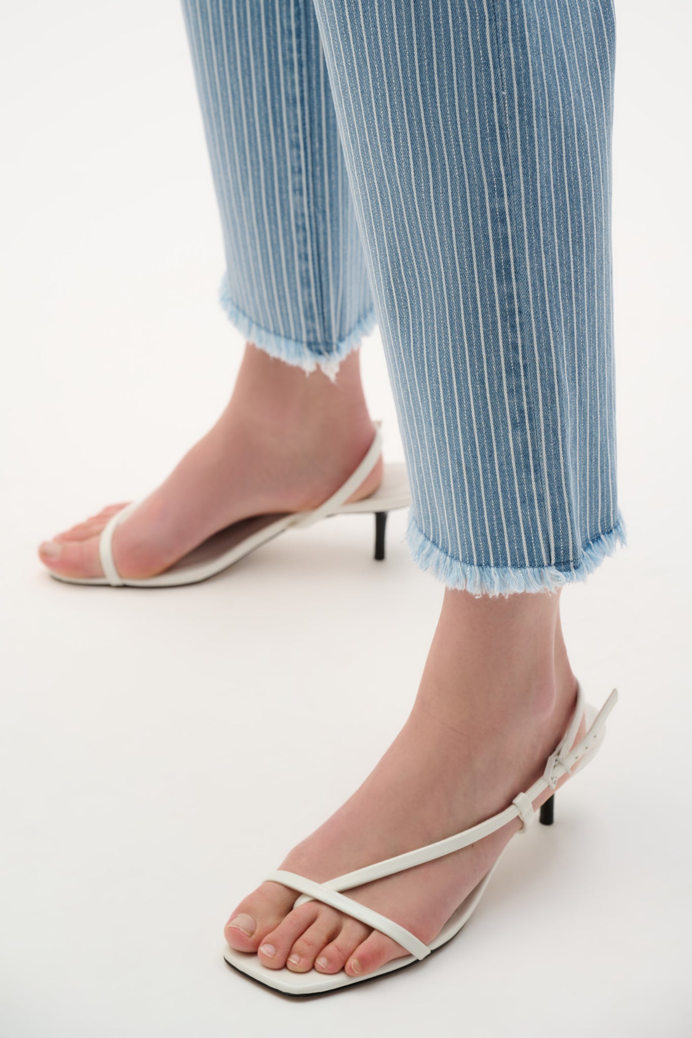 Crafted from a soft cotton denim, these straight crop jeans feature yarn-dyed stripes woven with lurex thread for subtle shine. The casual silhouette and lightweight feel make them an easy update to everyday denim.