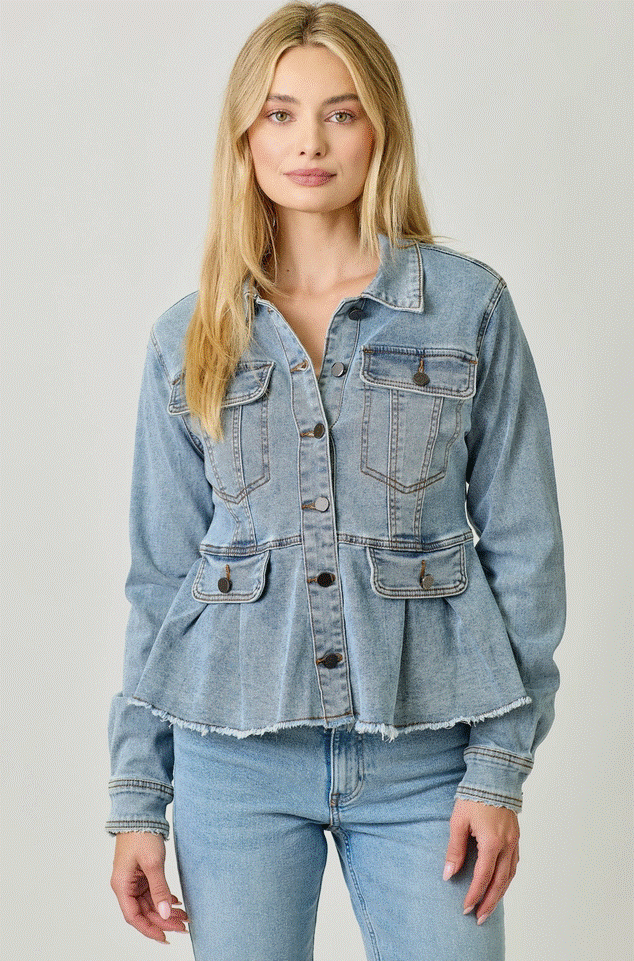 Peplum Washed Denim Jacket